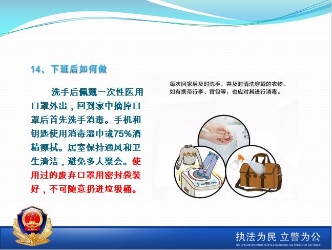 (1)佩戴口罩:在公共场所、人员密集场所佩戴好口罩。